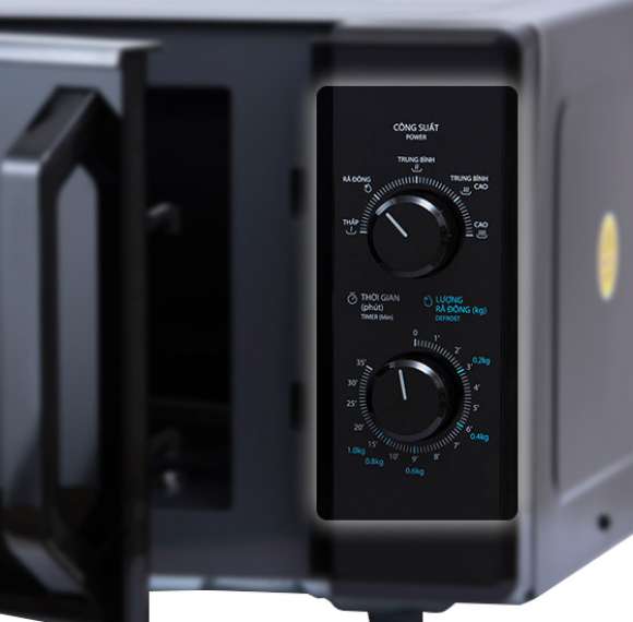 Một trong những ưu điểm nổi bật của Lò vi sóng Toshiba MW2-MM24PC(BK) chính là bảng điều khiển hoàn toàn bằng tiếng Việt. Dù có xuất xứ từ Thái Lan, sản phẩm này được thiết kế thân thiện với người dùng Việt Nam, giúp bạn dễ dàng điều chỉnh nhiệt độ và thời gian nấu nướng mà không lo nhầm lẫn. Thiết kế nút vặn cơ học cũng rất thuận tiện cho mọi đối tượng sử dụng, kể cả người lớn tuổi.