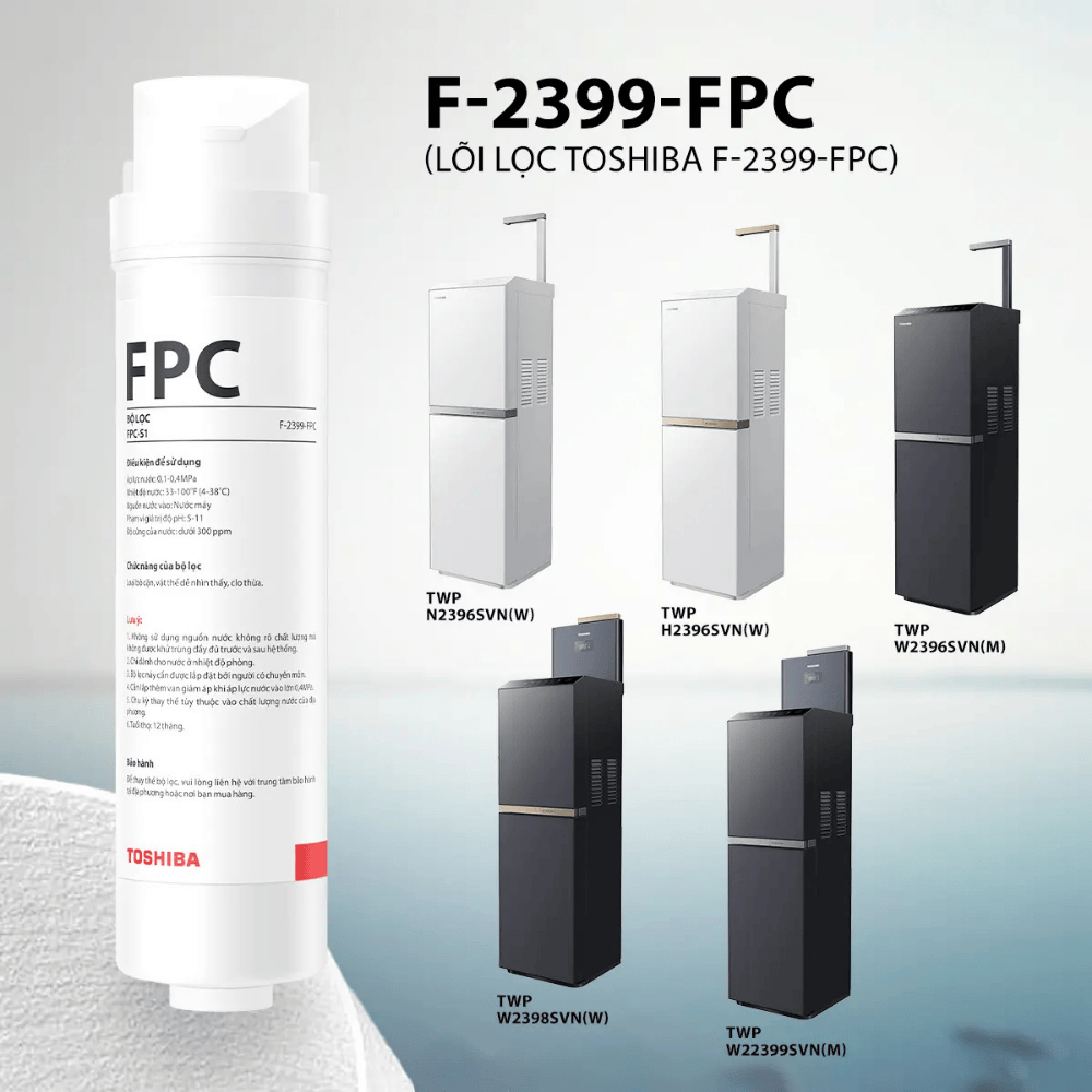 Tương thích: Các máy lọc nước Toshiba như: TWP-N2396SVN(W), TWP-H2396SVN(W), TWP-W2396SVN(M), TWP-W2398SVN(M), TWP-W2399SVN(M).
