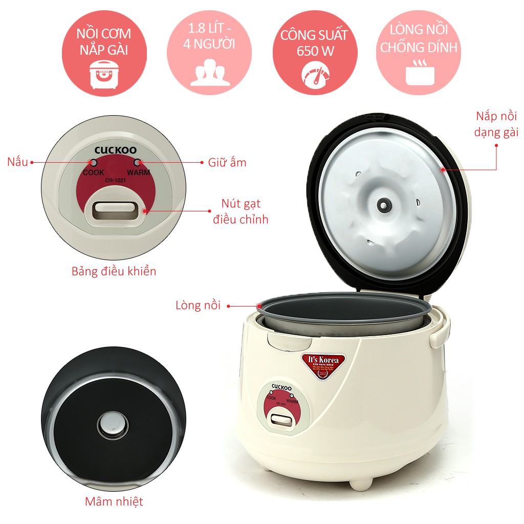 NỒI CƠM ĐIỆN CUCKOO CR-1021 1,8 LÍT xuất xứ hàn quốc, bảo hành 2 năm, hàng chính hãn