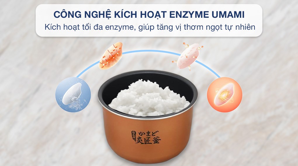 Nồi cơm ứng dụng công nghệ nấu AI tiên tiến, tự động điều chỉnh nhiệt độ và thời gian nấu tùy theo loại gạo và chương trình đã chọn. Đặc biệt, nhờ quy trình nấu độc quyền, mỗi hạt gạo được chăm chút kỹ lưỡng: từ ngâm gạo trong nước ấm, kiểm soát nhiệt độ từ 60-70°C để kích hoạt enzyme, đến phá vỡ cấu trúc tinh bột, giúp tăng hương vị ngọt lên 20-30%.
