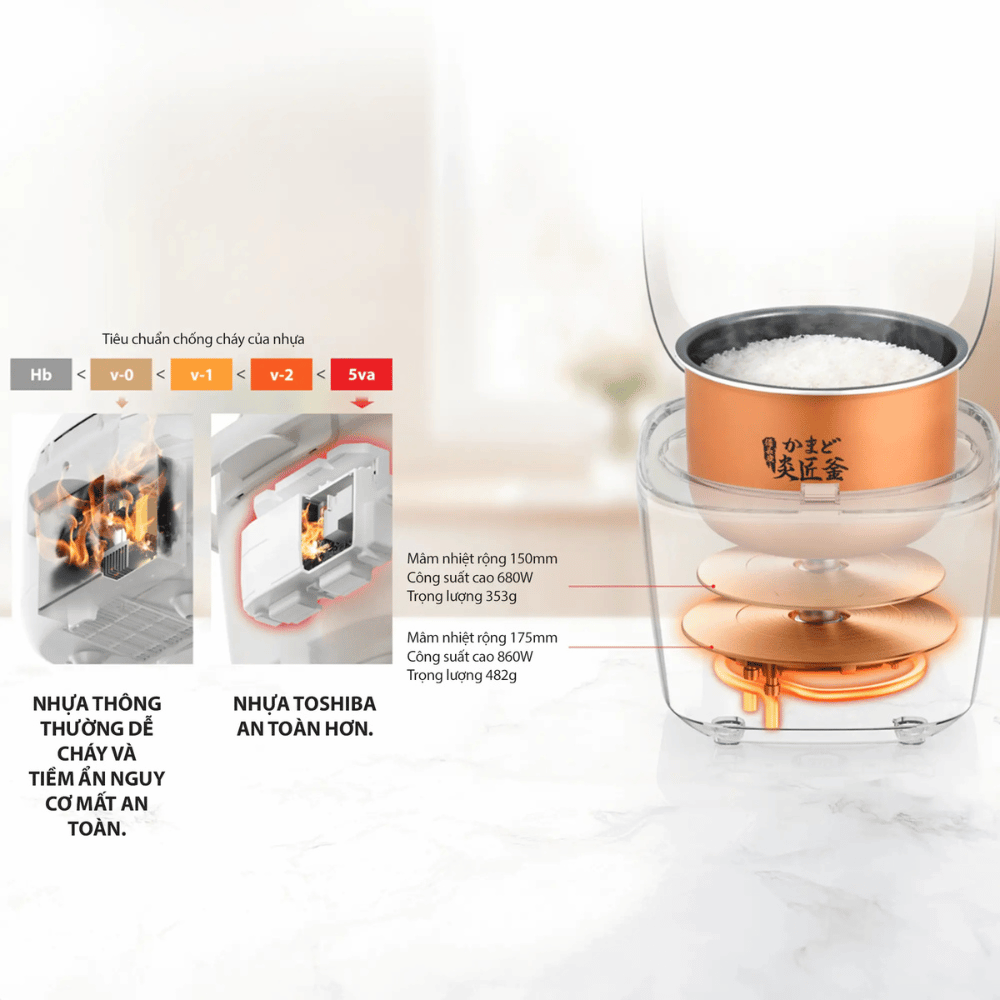 Được thiết kế với chất liệu nhựa an toàn, dây điện tháo rời linh hoạt, công suất cao và thiết kế tối ưu giữ nhiệt, Toshiba RC-18DR5UVN(W) mang lại trải nghiệm sử dụng an toàn, tiết kiệm điện và hiệu quả.