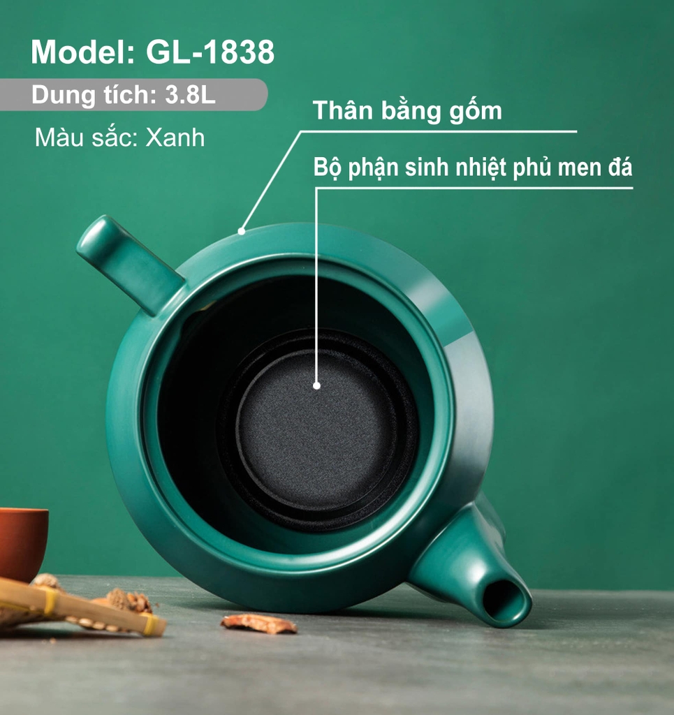 Siêu sắc thuốc Gali GL-1838 3,8 lít, Ấm sắc thuốc Gali GL-1838 men đá chống dính sắc tự động tặng kèm 4 phụ kiện, 2 vòng sứ
